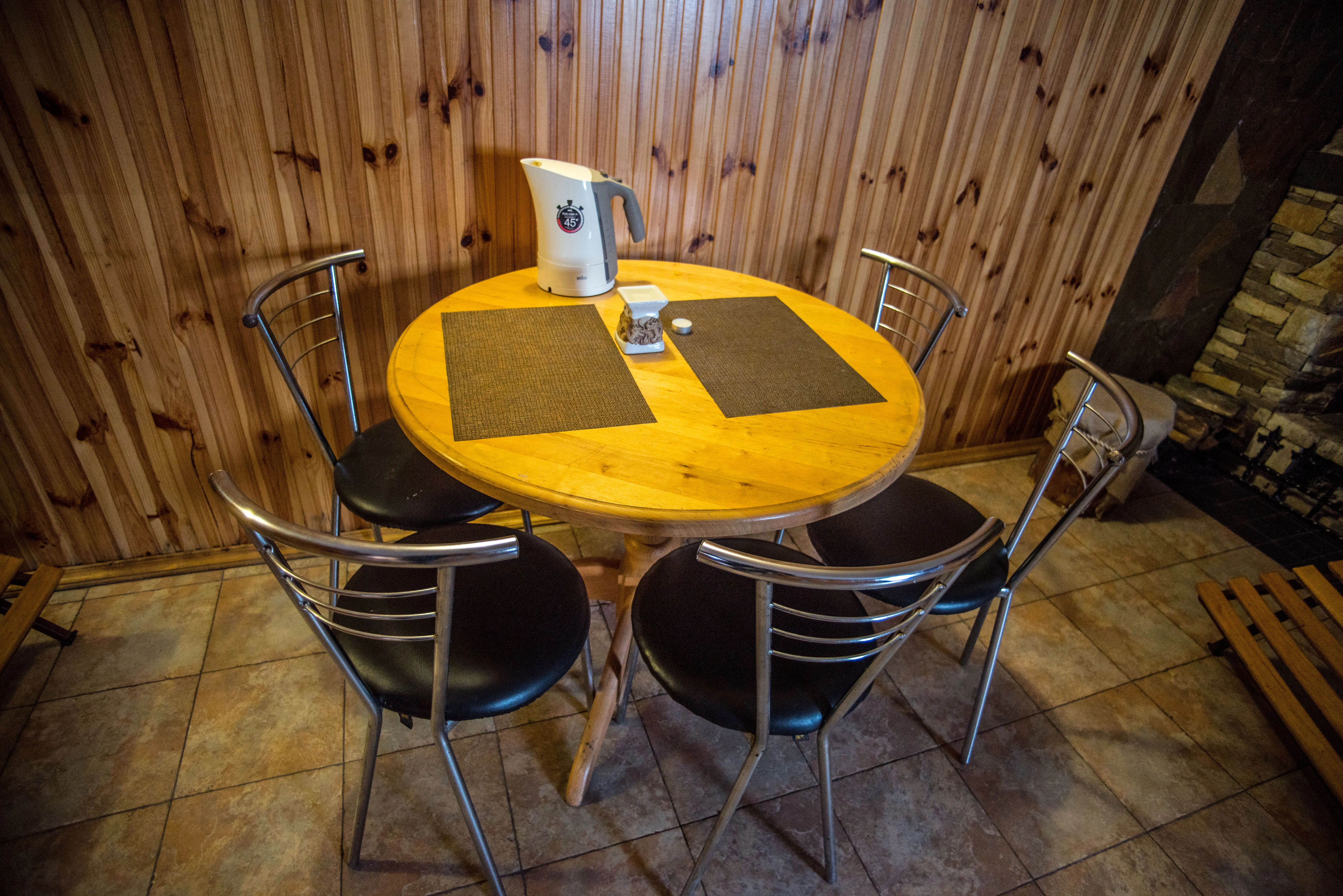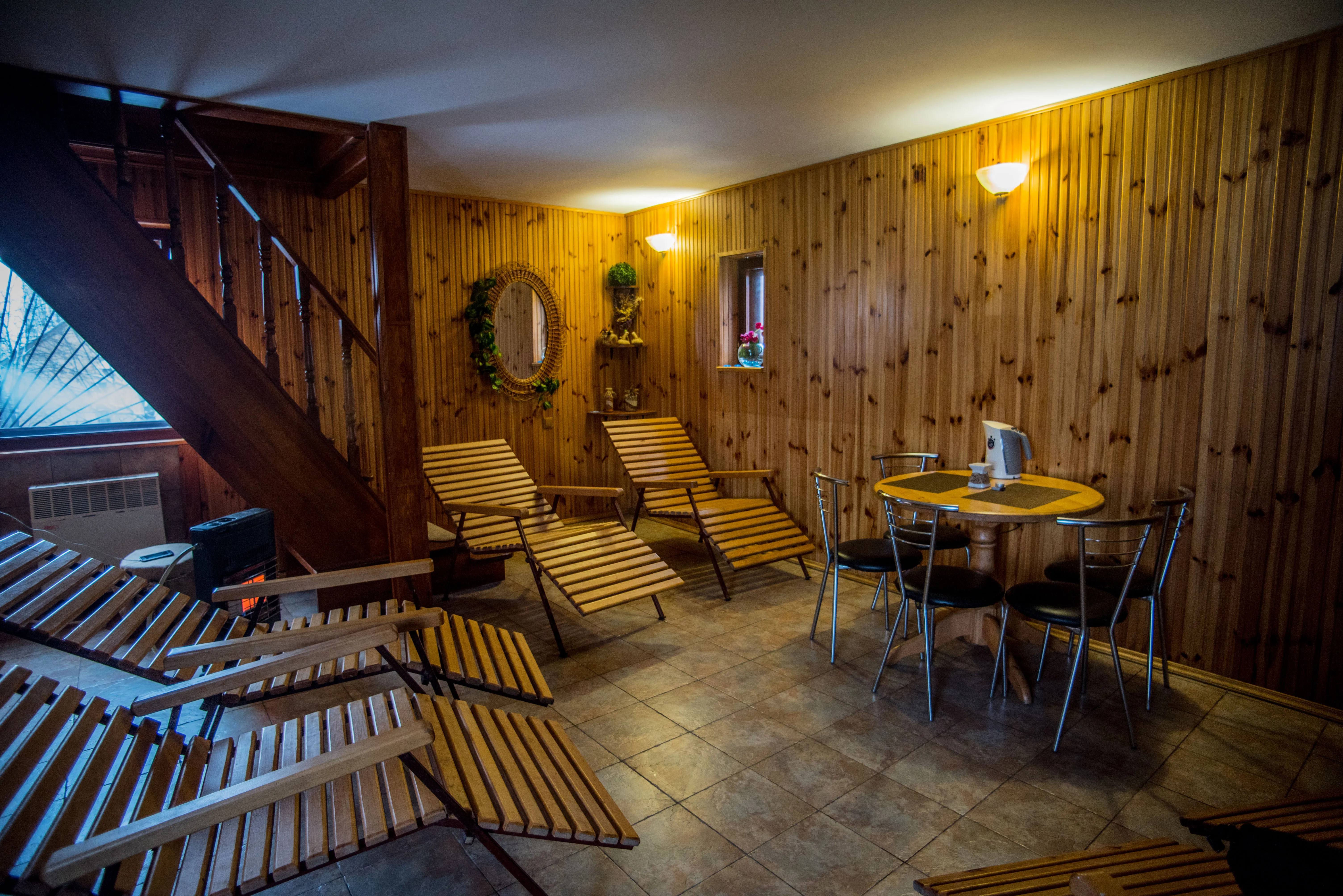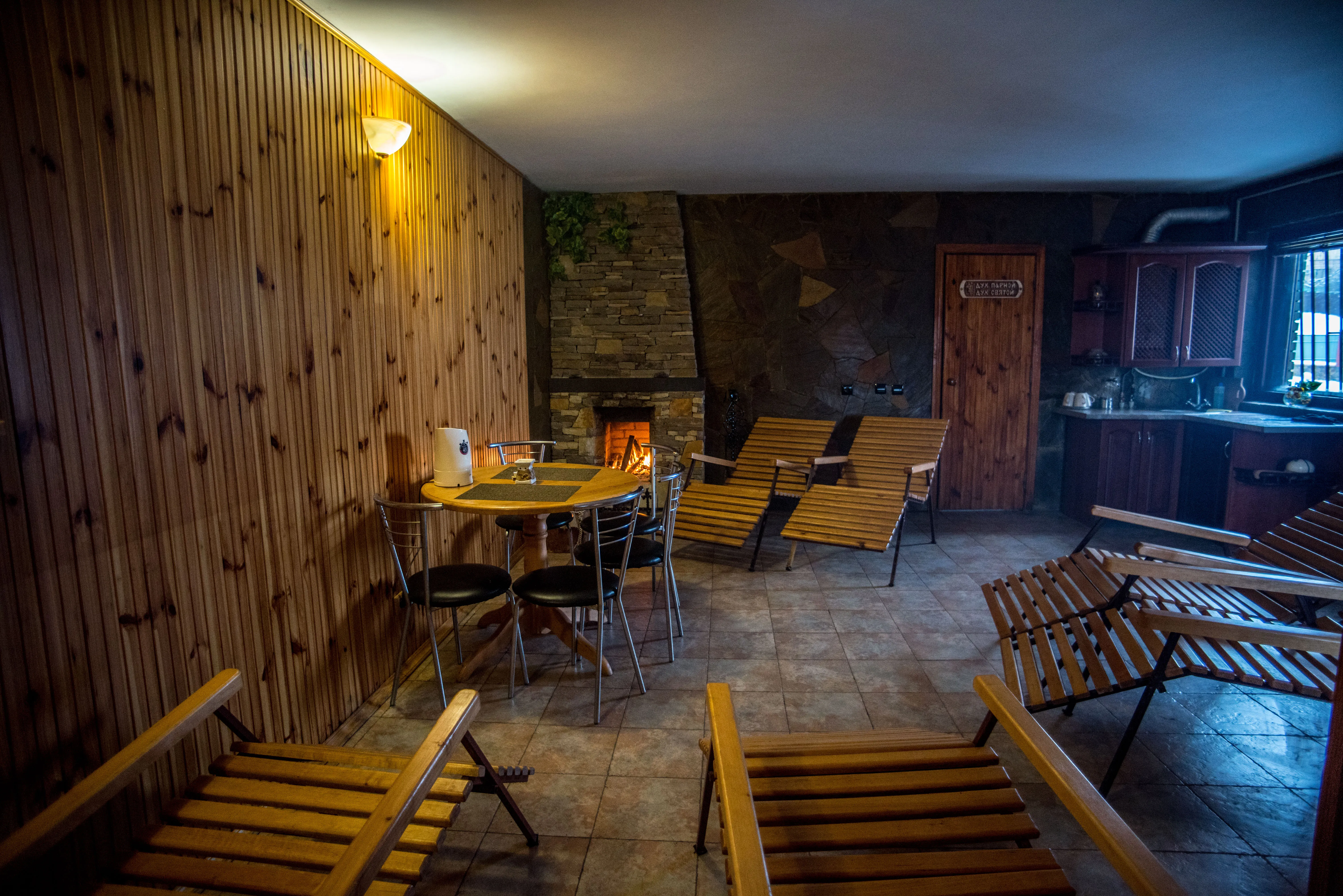 Сауна розрахована на 6 осіб*. У вашому розпорядженні парковка і весь банний комплекс: кімната відпочинку з міні кухнею, каміном і зручними дерев'яними лежаками на шість чоловік, басейн, парна, мангал і бесідка на вулиці. Також наш заклад можна замовити під будь-які свята (дні народження, Новий рік, корпоративи ...). Окремо можна замовити віники, дрова для каміна-мангала, простирадла, арома масла, одноразові капці та шапки. * Замовлення більшої кількості місць обговорюється по телефону.